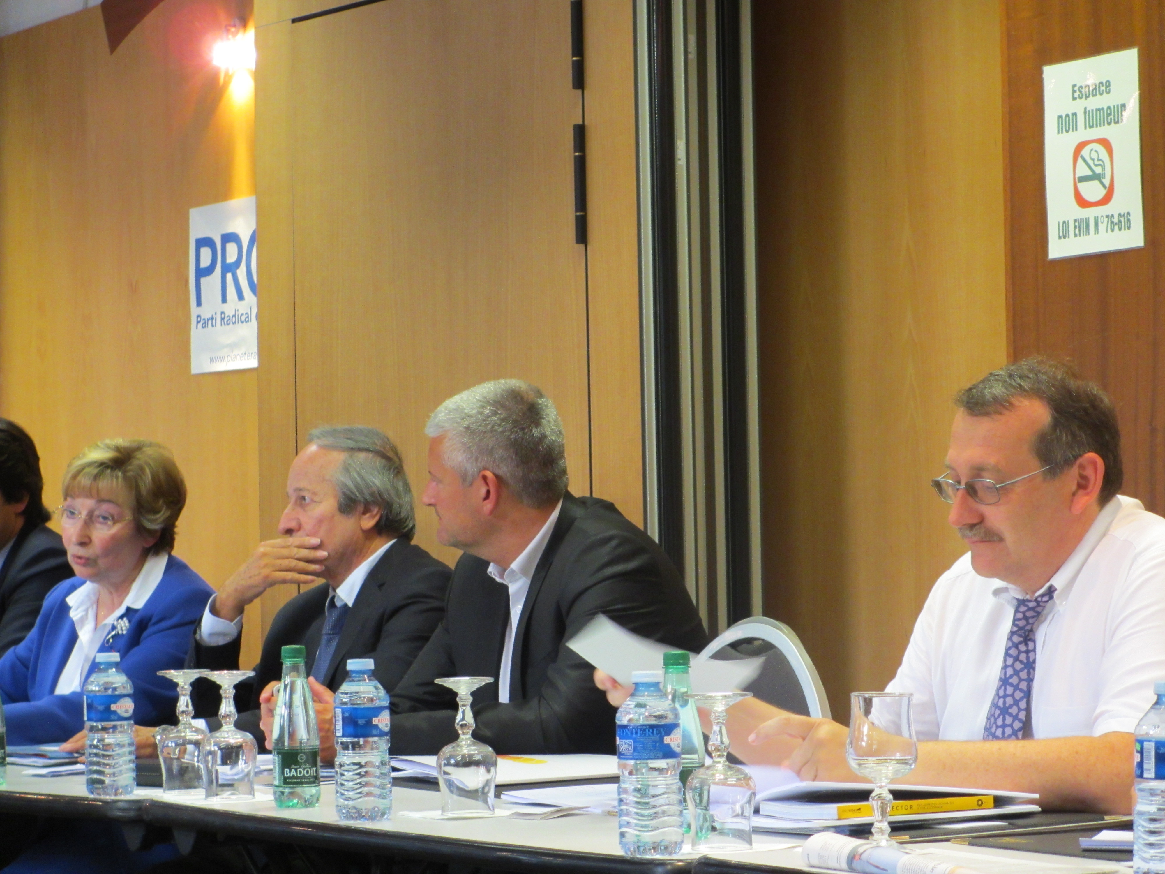 De gauche à droite : Jean-Michel Baylet sénateur RDSE de Tarn-et-Garonne et Président du PRG, Roger-Gérard Schwartzenberg député du Val-de-Marne et président du groupe RRDP, Ary Chalus, député de Guadeloupe, et Joël Giraud, député des Hautes-Alpes