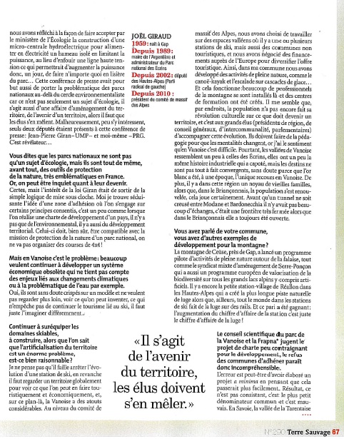 Lisez l'article en version PDF : Téléchargement Terre Sauvage Mars 2013 N°290 Joël Giraud Un parc national n'est pas une contrainte