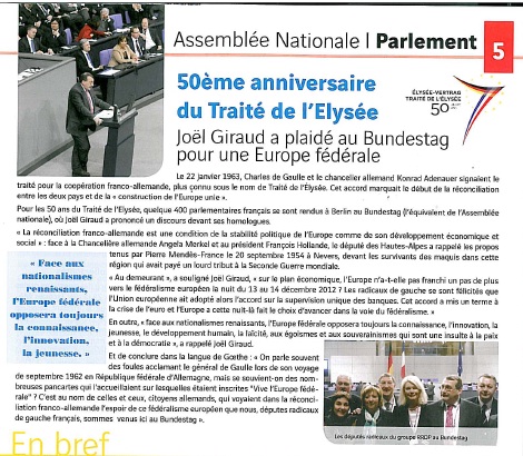 Pour information, voici un billet du député de Michel Piron, député UDI de la 4ème circonscription de Maire-et-Loire, vice-président du groupe d'amitié France-Italie.