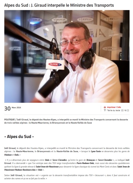 Il était hier question de financement des infrastructures de transports à l’Assemblée Nationale et le député des Hautes-Alpes a interpellé le Ministre des transports sur le sujet de la desserte des trois vallées alpines : la Haute-Maurienne (Savoie), le Briançonnais (Hautes-Alpes) et la Haute-Vallée de Suse (Italie) lorsque le Lyon-Turin ne desservira plus les gares de Modane (73) et Oulx (Italie).